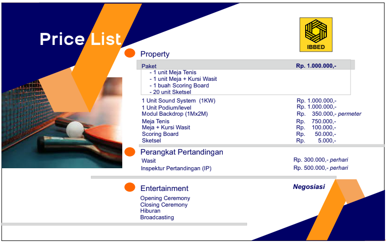 IBBED menjadi salah sau pilihan yang tepat untuk kebutuhan penyewaan perangkat tenis meja